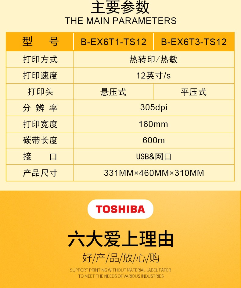 具有12IPS打印速度、結(jié)合打印溫度和步進(jìn)控制技術(shù),能滿足各類標(biāo)簽打印的需求,懸壓打印技術(shù)和碳帶節(jié)省功能,能降低客戶使用成本,提升投資回報(bào)率。EX6T3堅(jiān)固耐用,擁有平壓打印及居中打印技術(shù)的同時(shí),結(jié)合多種人性化、智能化設(shè)計(jì),提供寬幅工業(yè)標(biāo)簽打印應(yīng)用。廣泛的應(yīng)用領(lǐng)域:物流運(yùn)輸 / 制造 / 化工 / 鋼鐵 / 電力行業(yè) 聯(lián)系人:李先生 手機(jī):18929304946 陳小姐(業(yè)務(wù)):189293049